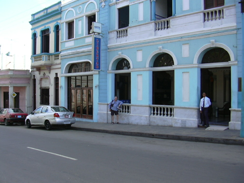 Jim at the entrance of the Moncada Barracks, which Fidel and his guerrillas attacked Batista's men in July of 1953. It was one of the early efforts of Castro's takeover, and was so unsuccessful that things were put on hold for 3 1/2 years. The bullet holes are faked, although supposedly fairly representational. The building is now a museum and a school.