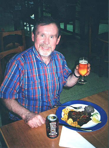 Here's Paul with a typical Cuban meal - some kind of meat, rice and beans pilaf, fried bananas, and a wee bit of veggies. And a Buccanero.