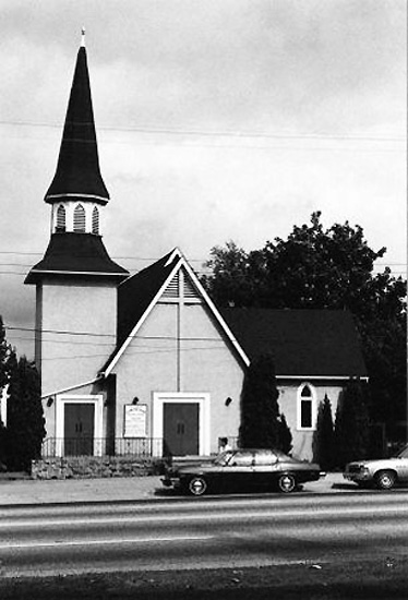 | The St. John the Divine Anglican Church at 3895 Kingsway, across the street from Central Park. It was constructed in 1899 and in 1976 still held regular services. I was delighted to find this cute little church still existed pretty much intact. If anything, the changes had improved its look. If you search in the archives by the name, you can see a number of interesting photos of it, dating right back to when it was built. |
