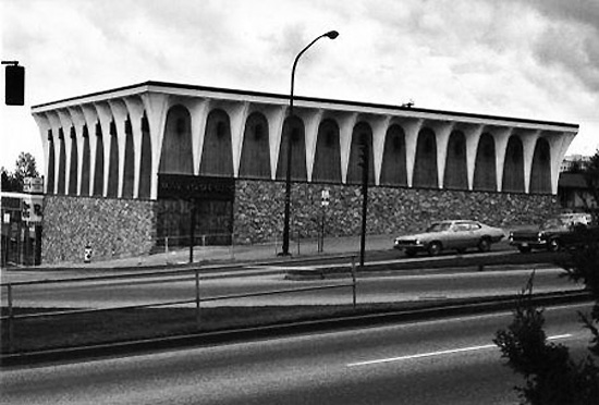 | The Hanna Medical Clinic at 3300 Boundary Road on the corner of Canada Way, built by Dr. R. J. Hanna. I drive past this intersection all the time, and knew full well that the bulding had been torn down long ago and replaced with a totally forgetable structure housing a Starbucks and a Pharmasave. But it still makes me sad everytime I think of it. The clinic was quite distinctive - whether you liked it or not, you remembered it. (I liked it.) |